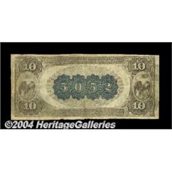 McAlester, Indian Territory - $10 1882 Brown Back Fr. 491 The First NB Ch. # (W)5052The Huntoon census reports four Territorial examples known from here, with this the finest of that quartet. This specimen grades a pleasing Fine+, with claims to an even higher grade, and would make a perfect Territorial example for the collector who wants to have just one of these historically significant items as a part of his holdings. Expect our estimate to be on the conservative side here by the time the hammer falls tonight. <BR><BR><B>Important notice:</B> Heritage usually auctions material at the rate of 200-250 lots per hour. On some occasions eBay Live bid software or the Internet may not be able to keep up with the pace of the auction. We recommend placing a realistic absentee bid now as insurance to avoid disappointment. Occasionally the auctioneer may eliminate or reject an eBay Live bid, and the auctioneer may also reopen a lot after the close of the eBay live bidding (usually because we missed an audience bid), and may reject your bid even if it shows you as the winning bidder. By bidding via eBay Live, you agree that Heritage may award the lot to another bidder at its sole discretion under the circumstances described above or any other reasonable circumstances. Since eBay bids are not shown to us until we open the lot on the floor, we treat those bids just like floor bids. In most cases the floor responds before the eBay bid is presented to us, due to Internet lag time, so for consistency we have made it a policy that floor bids are always considered first over tie eBay live bids. Also please note that all Heritage lots purchased through eBay Live carry a 20% Buyer's Premium. Please make sure you read the Terms and Conditions before you bid. <BR><BR><B>IMPORTANT ANNOUNCEMENT ABOUT RESERVES:</B> Heritage now divulges all reserves on its web site 7 days before every auction. If you want to know whether the reserve on this lot has been met, and if not, what the reserve amount is, please visit this lot page on the HeritageCoin.com web site, or email: bid@HeritageGalleries.com