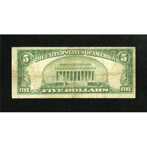 <B>McAlester, OK</B></I> - $5 1929 Ty. 1 <B>The First NB</B></I> Ch. # 5052<BR> This complete example that is the only known Type 1 $5 is cut a bit into the top margin. <B>Very Good-Fine.</B></I><BR><I>From The Rolling Plains Collection</B></I><BR><BR><b>Shipping:</b> Coins & Currency (<a target="_blank" href="http://www.heritageauctions.com/common/shipping.php">view shipping information</a>)