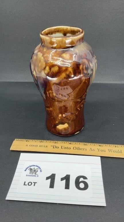 McCOY POTTERY BROWN DRIP GLAZE, EMBOSSED DRAGON 7