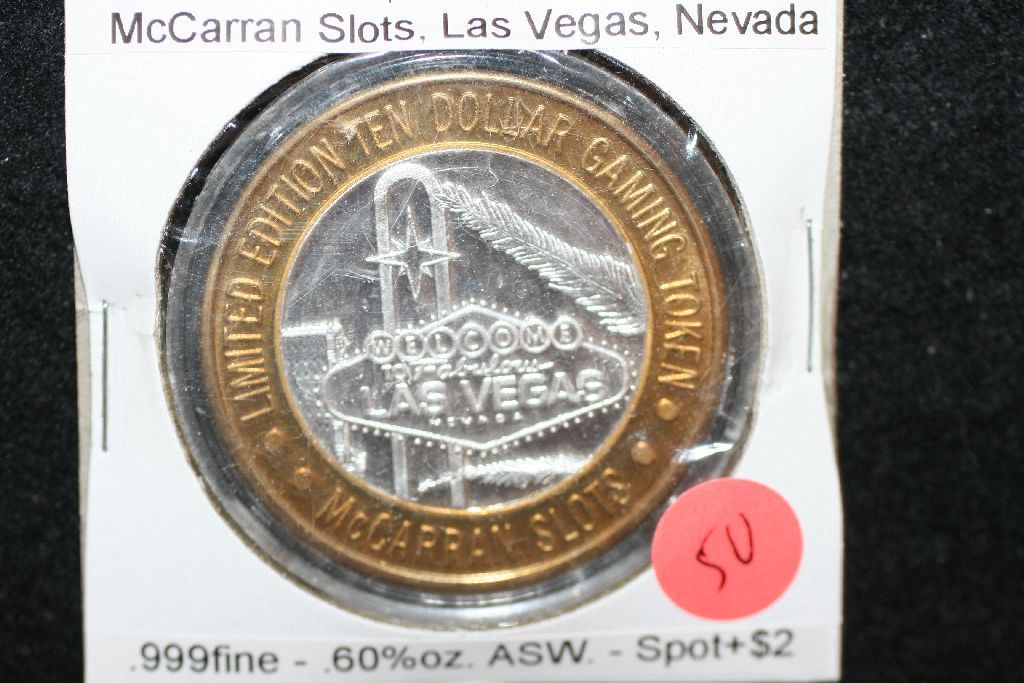 McCarran Airport Slots Las Vegas NV Limited Edition Two-Tone $10 Gaming Token; .999 Fine Silver .60% Oz. ASW