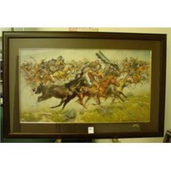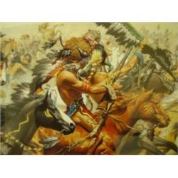 Limited Edition print (930/1500). Frank C. McCarthy. "The Last Stand: Little Big Horn" - 1988. Studied under Reginald March - 1974. Started painting in the West. This image depicts Cheyenne & Sioux revenge against Custer for the massacre of their people. Signed in pencil on lower left. Greenwich Workshop. Professionally framed. Condition: Excellent with papers.