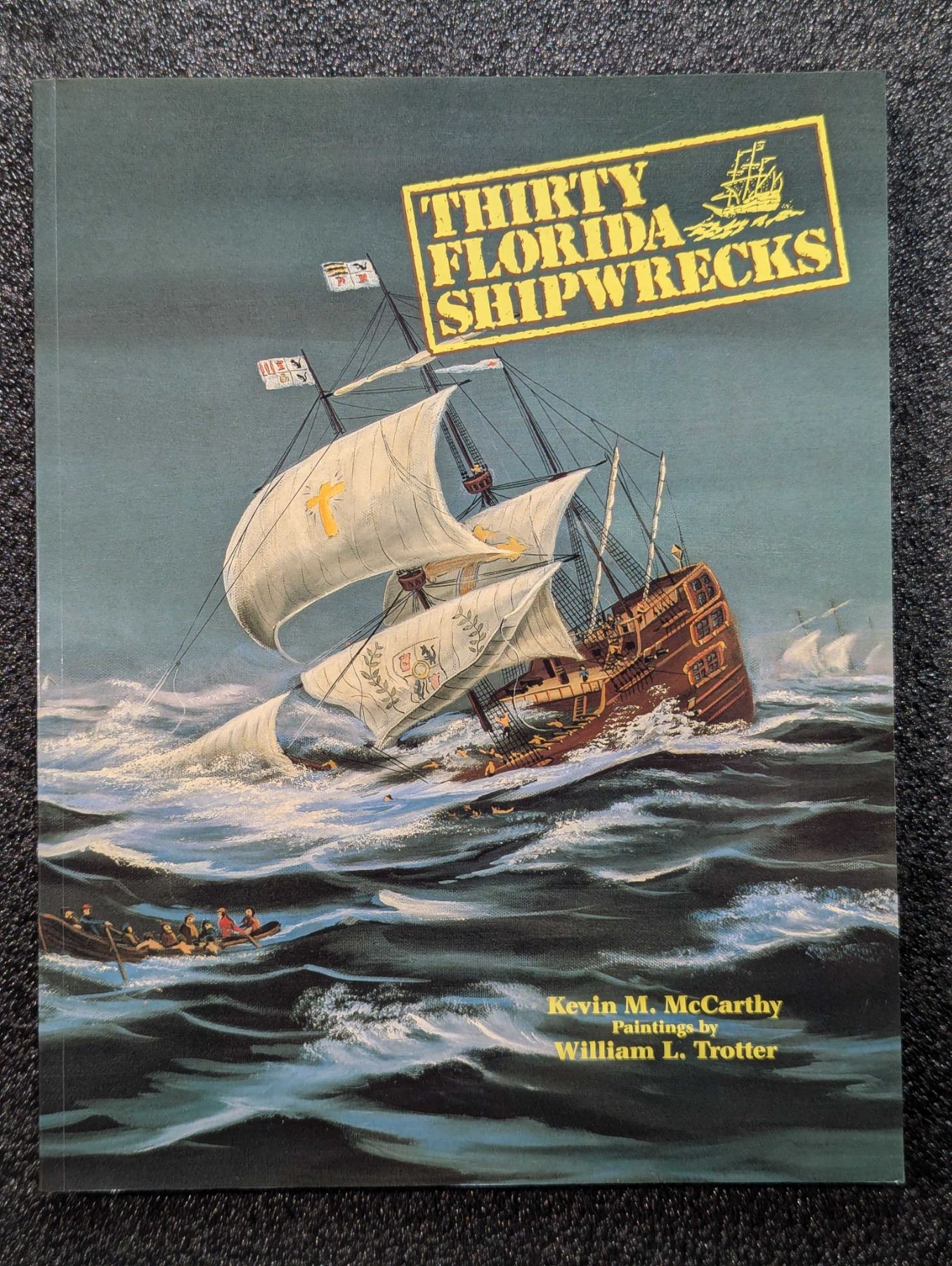 McCarthy, Kevin M. THIRTY FLORIDA SHIPWRECKS. Pineapple Press, Sarasota. 1992. 4to. 128 pages. original pictorial card covers. 1st edition, 3rd printing. Color illustrations throughout. English text. The David Baker Library. Fine. This book describes 29 modern and historic shipwrecks near the Florida coast, and the salvage/excavation of the wrecks. It includes 3 treasure wrecks: the 'Atocha' from the 1622 Fleet, the 'Urca de Lima' from the 1715 Fleet, and the 'San Pedro' from the 1733 Fleet. It also includes several additional wrecks of historical importance: Fontaneda’s shipwreck (1545), the 'Trinite' (1565), the 'HMS Winchester' (1695), the 'Reformation' (1696), the slave ship 'Henrietta Marie' (1701), the 'HMS Looe' (1781) and the 'USS Alligator' (1822). Lot weight: 1 lbs 1oz. Subject(s): Sunken Treasure.