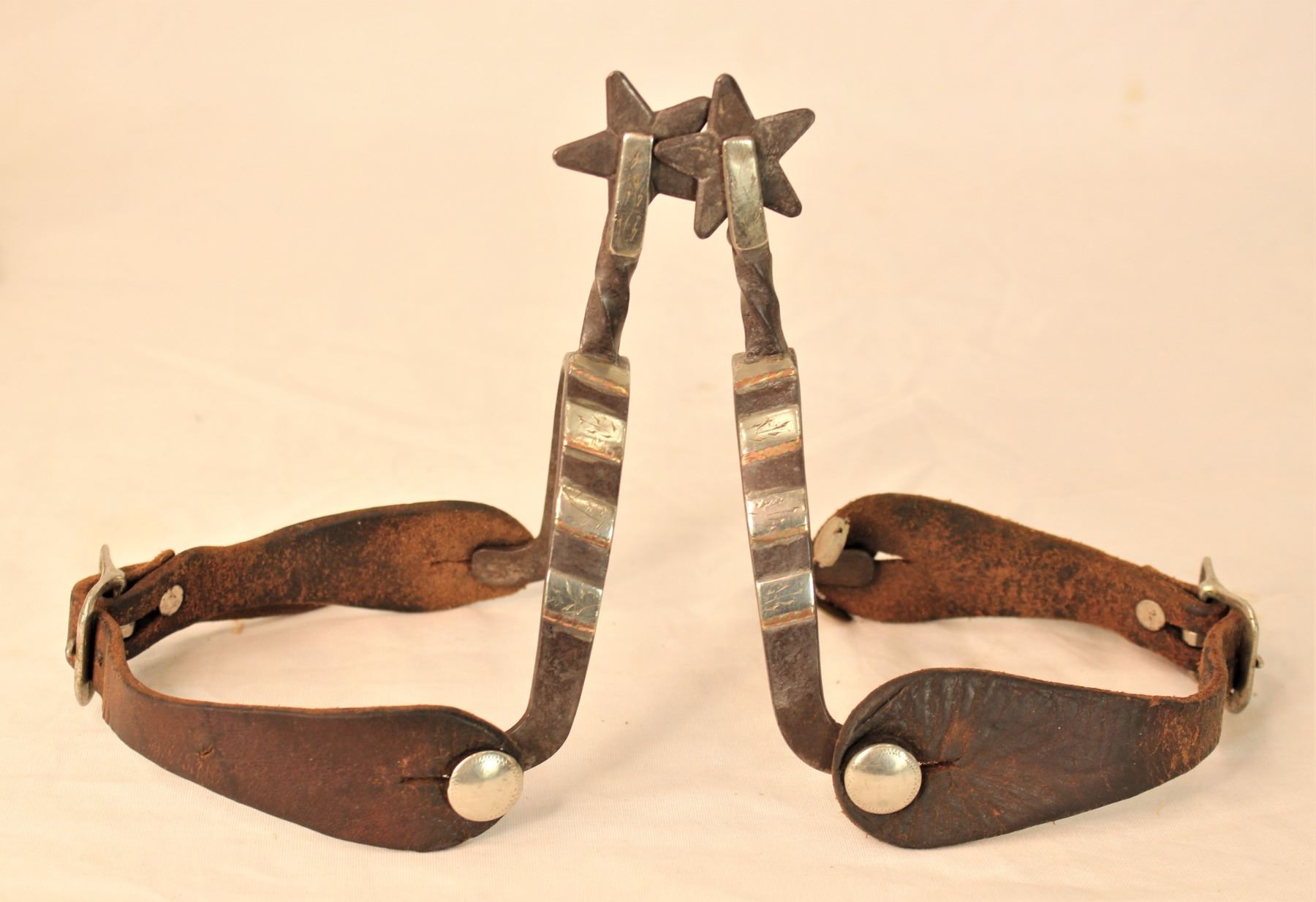 Fabulous single mounted spurs with great twisted wire, twisted shanks and five point rowels.