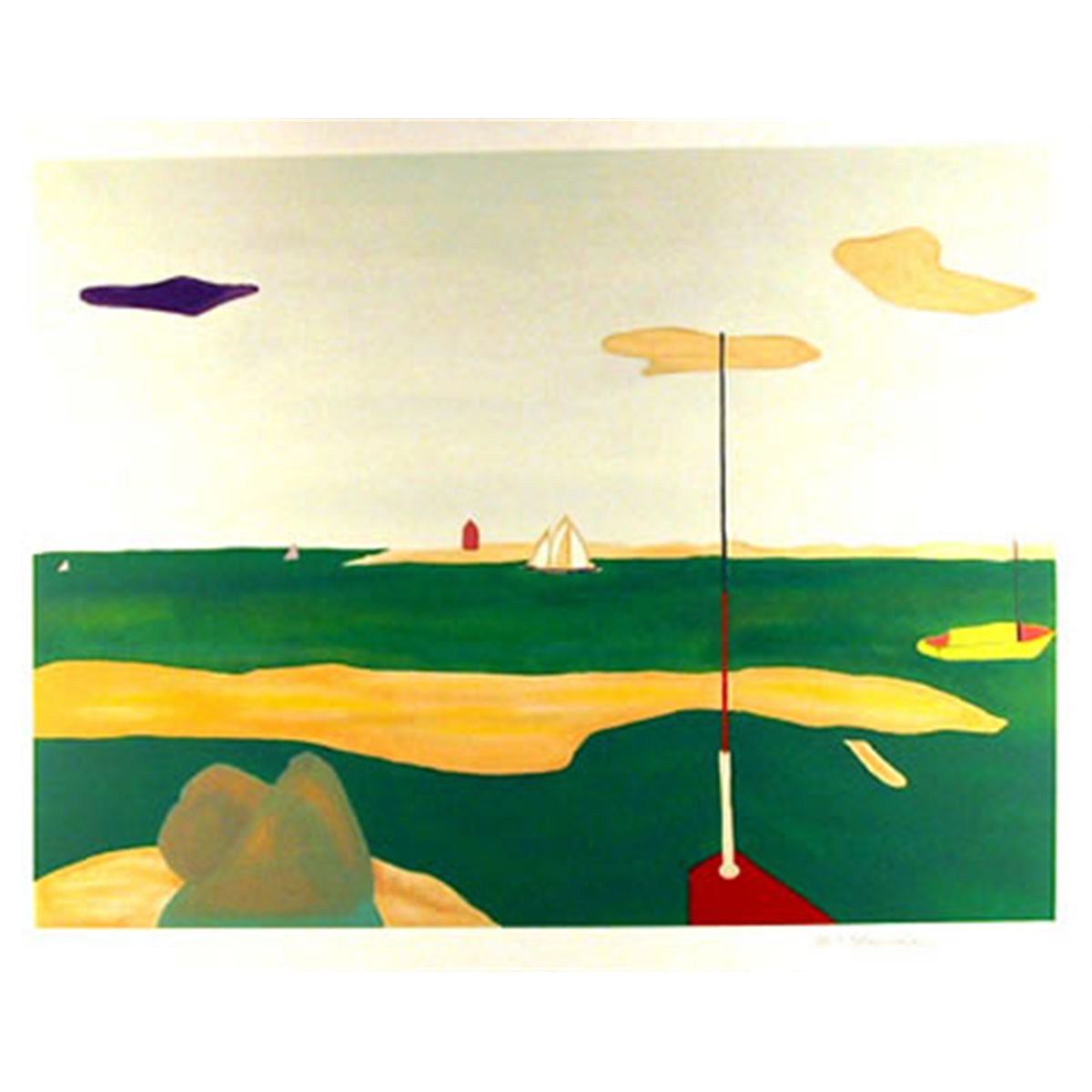 McClanahan's paintings are so bright and lively,-so "sparkling with sunlight, warmth and joy," as David Shirey said in a New York Times review of her show at the Graham Gallery in 1972-that it is easy to some unexpected treat to be found in a corner. Tom Prideaux, writing about some of her softer more atmospheric paintings, remarked of one of them, "a memorable meeting between bland sand dunes and mild blue skies. Strictly speaking, these are pastel shades. But there is no pastel feeling in these paintings, or, if there is, it is pastel with a sting, like a baby-blue Portuguese man-of-war on a pale beige beach."
