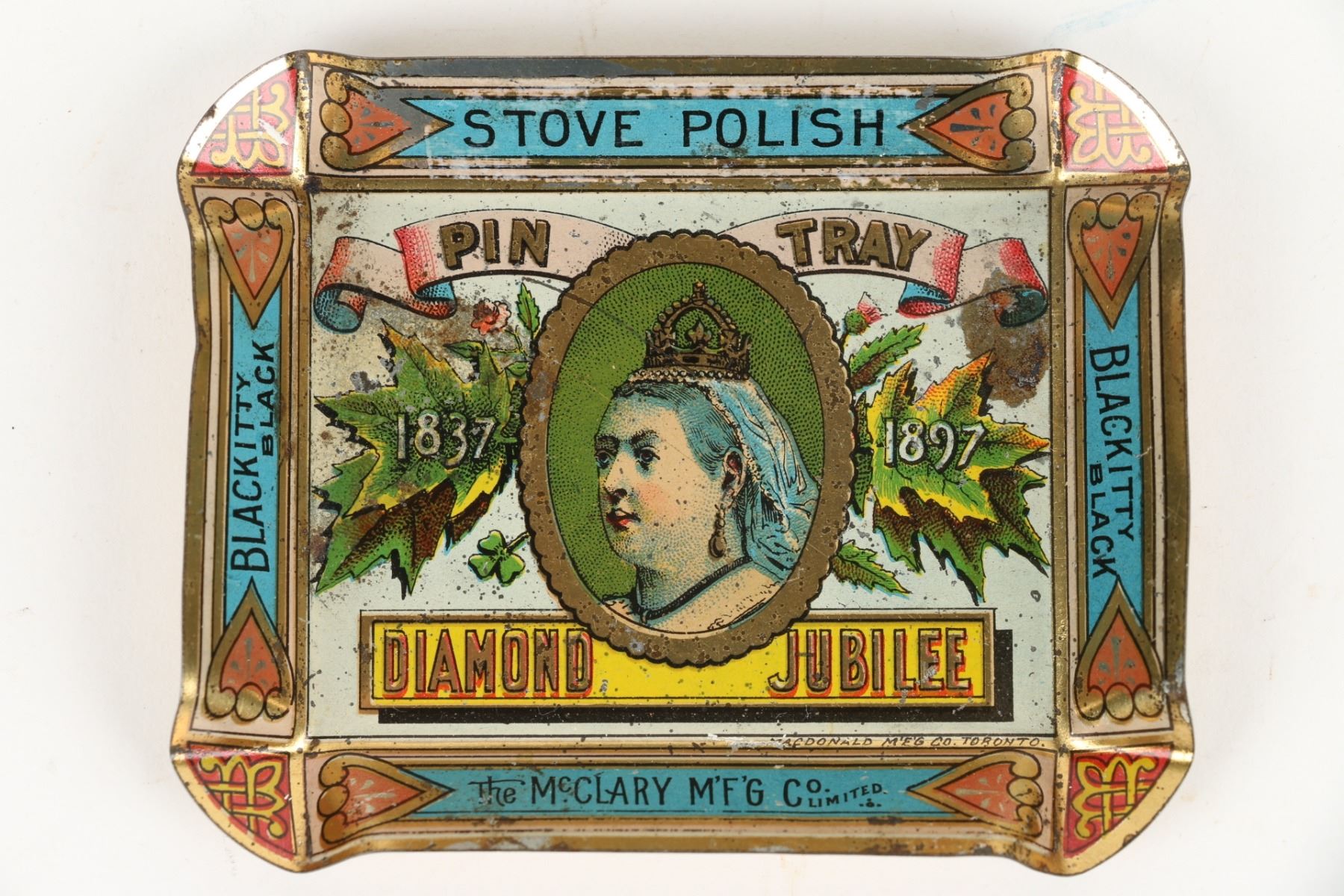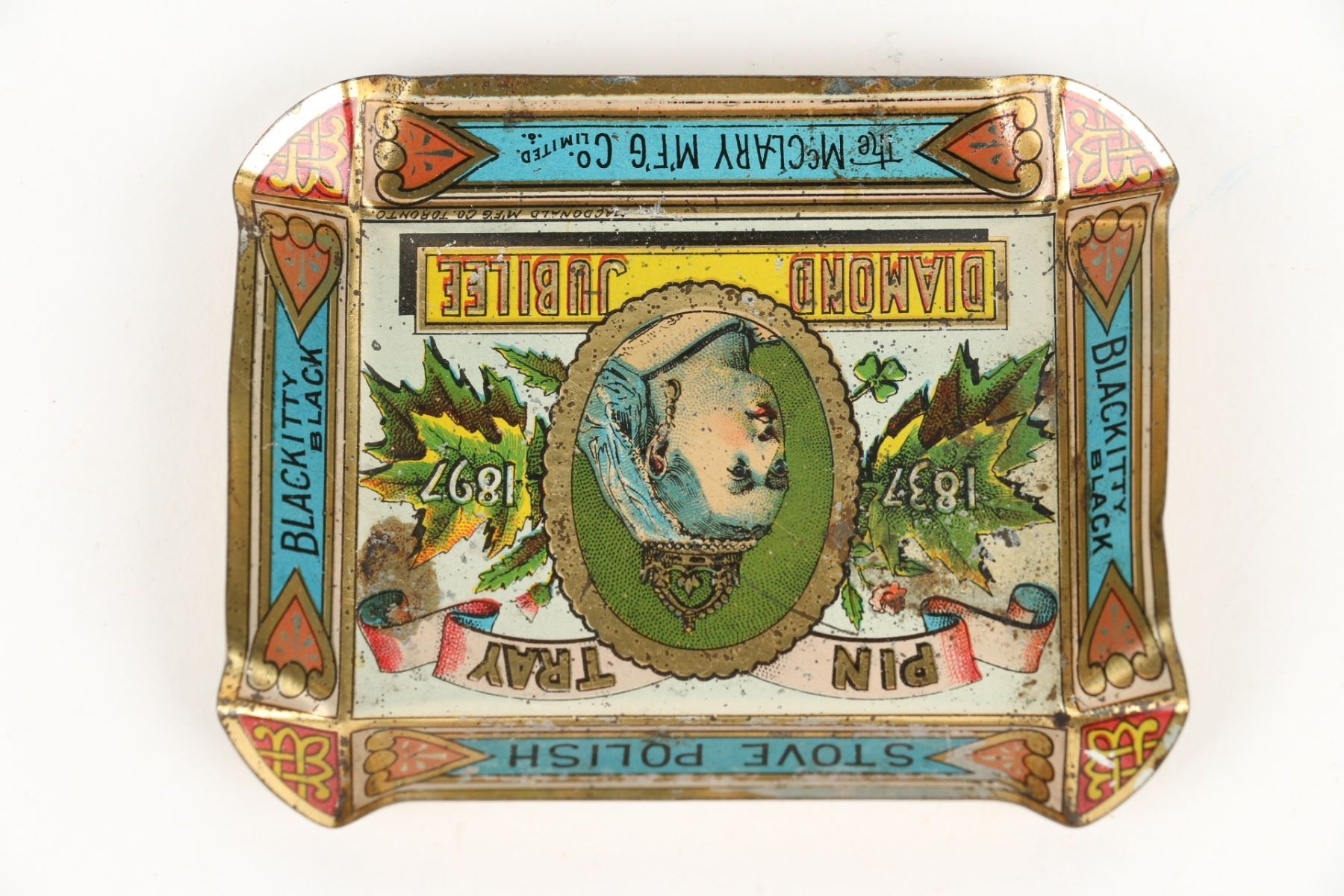 Canadian, 1897, featuring Queen Victoria's Diamond Jubilee. Marked, MacDonald Mfg. Co. Toronto. Condition: Very Good. Minor oxidization. 3.5" x 2.75".