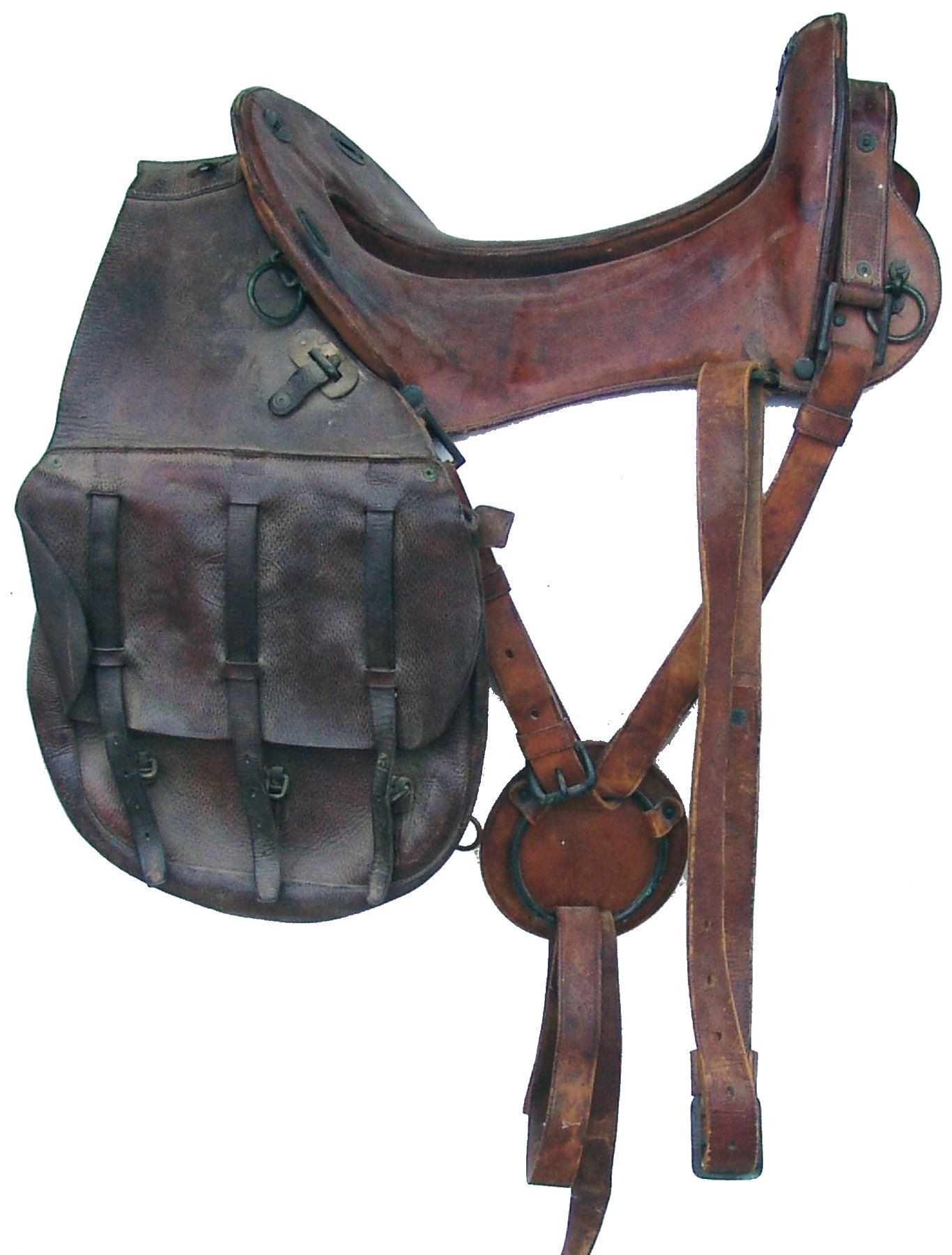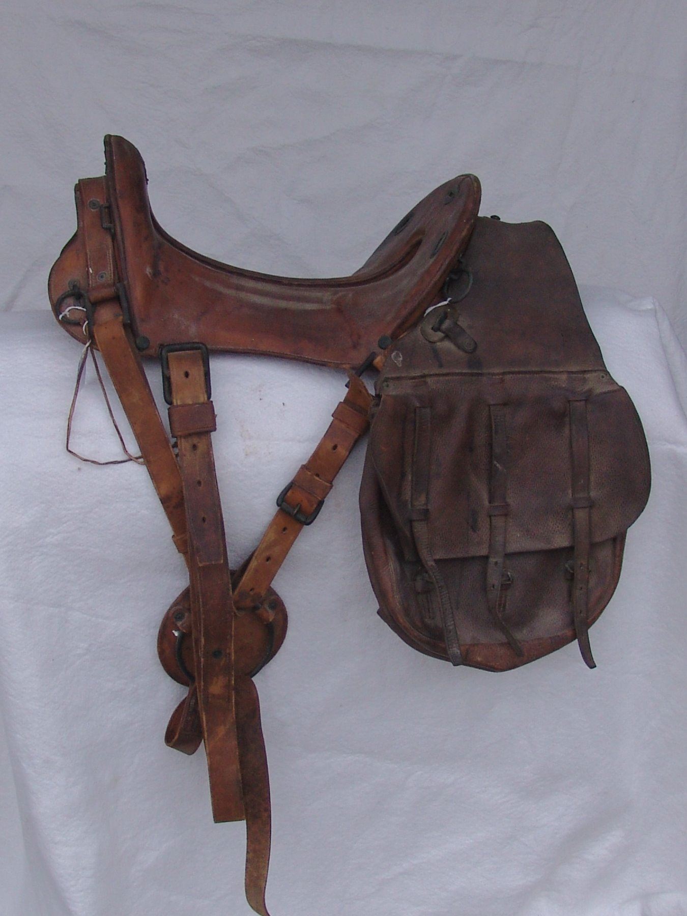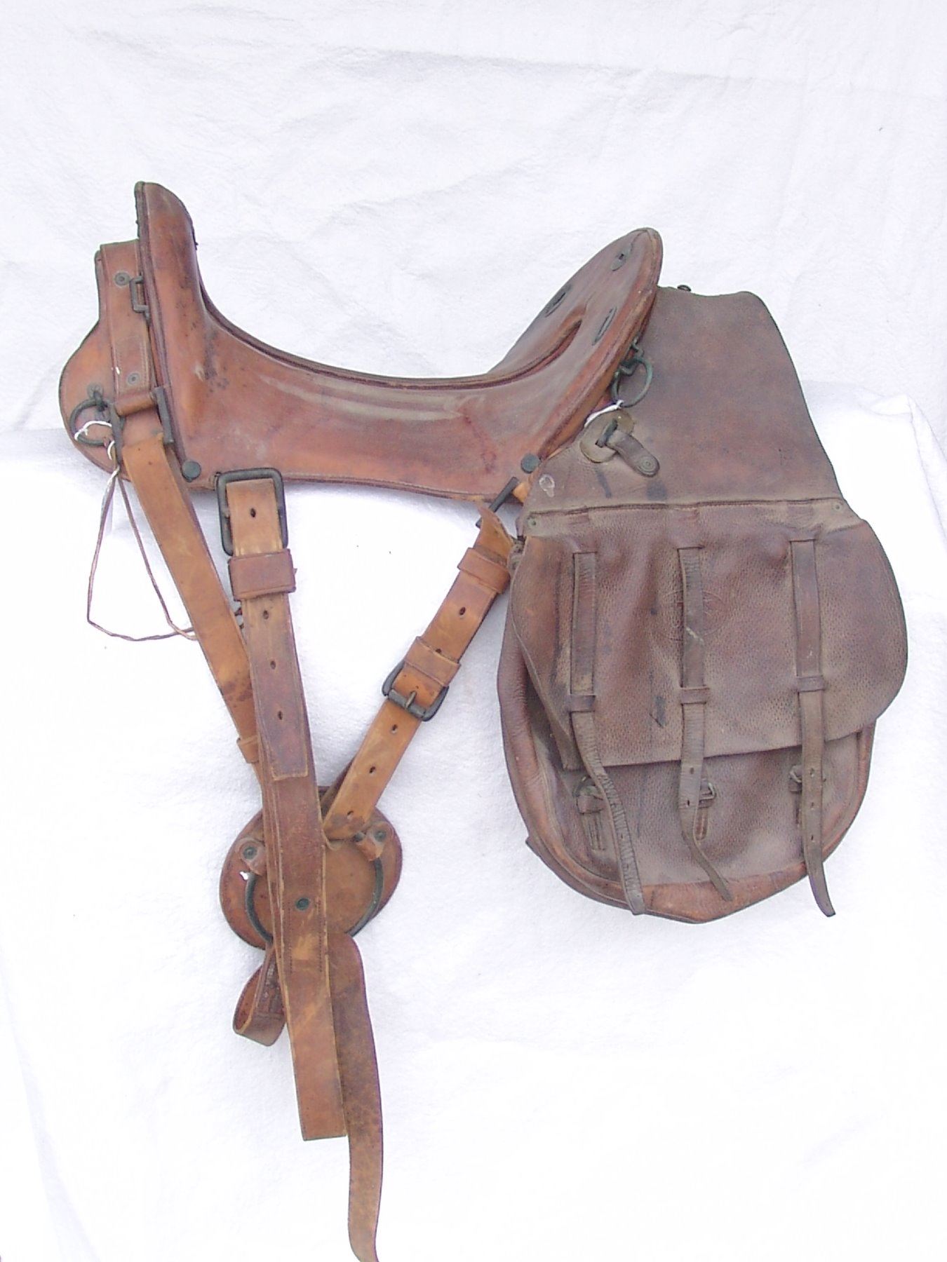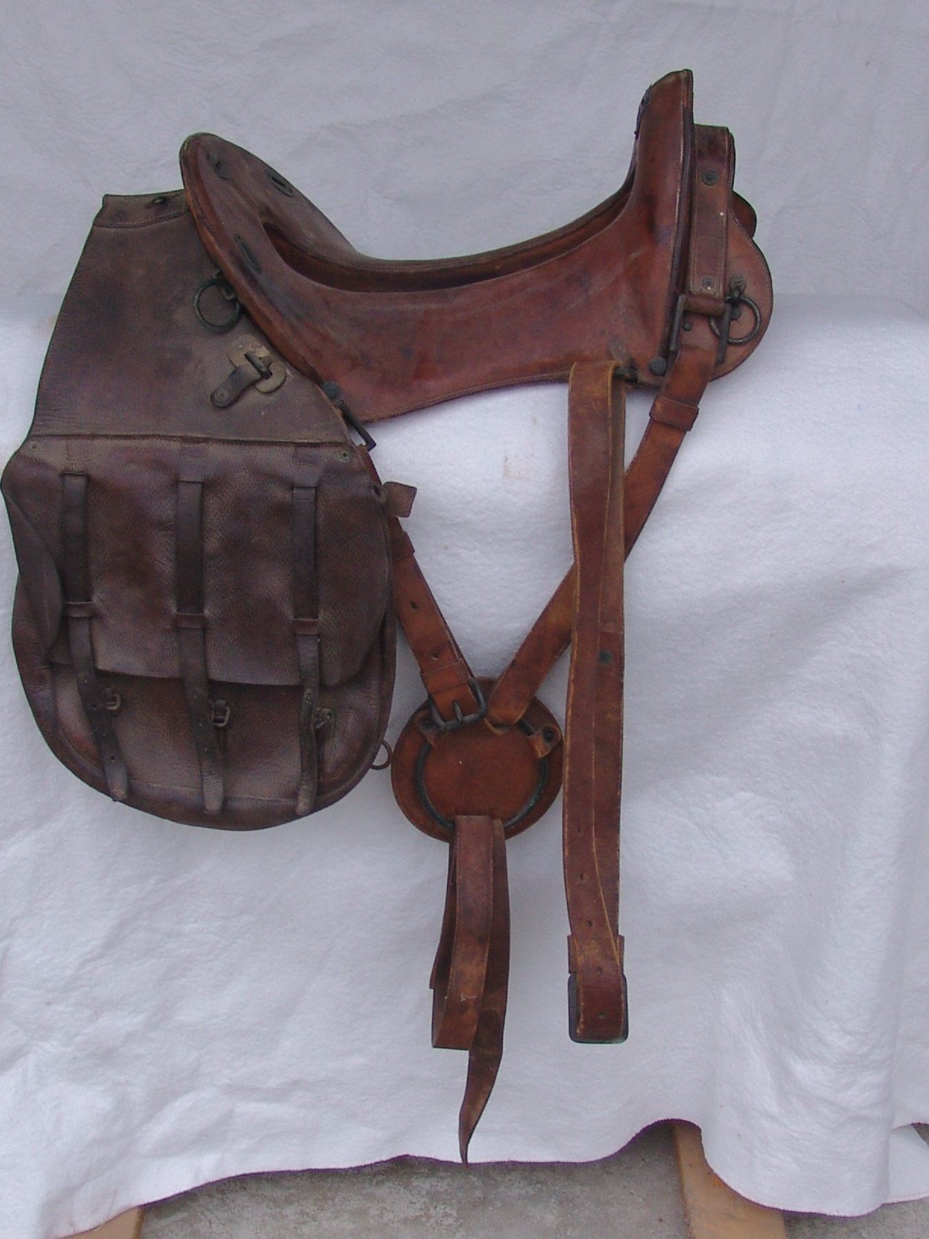 Early 1900s Standard Classic US cavalry saddle with a pair of early saddle bags. Fair/good condition.
