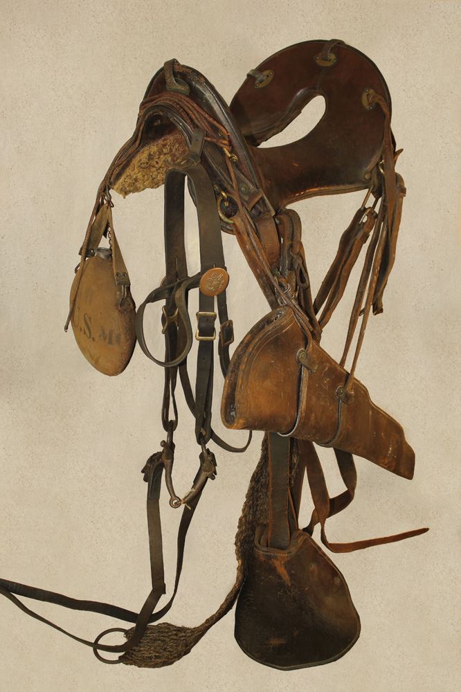 Super nice 1904 Model US Cavalry McClelland style saddle and all of its accoutrements, rifle scabbard, canteen, and bridle.