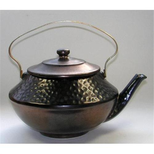 Produced by McCoy, circa 1970, this vintage cookie jar features a classic teapot shape wiyh a copper lustre finish and a brass handle. Embossed on the bottom, in large letters, McCoy - USA. Both the jar and lid are in excellent condition - no crazing