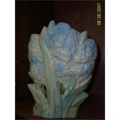 Outstanding high gloss glazed; soft pastel blue McCoy Hyancinth Vase. Est. value $150-$200</strong></em></font></td>