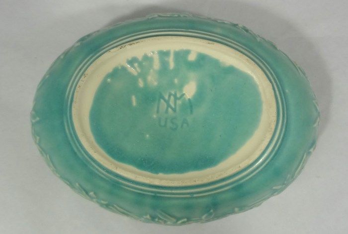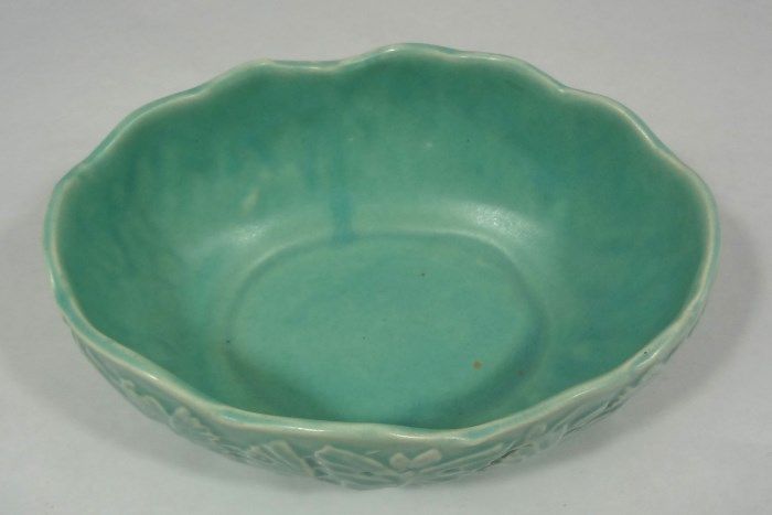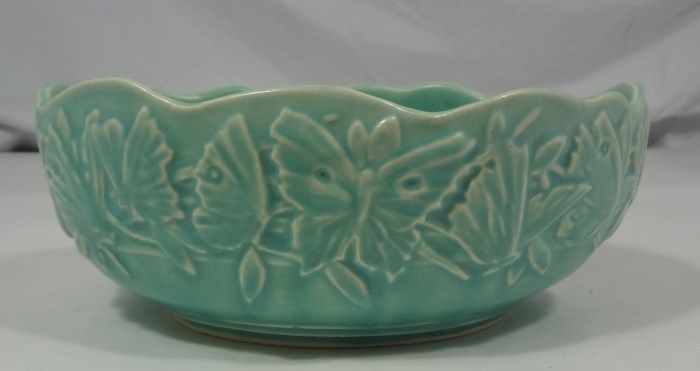 NM marked Butterfly Line pin dish/console bowl in matte aqua. A similar piece can be found in Warman's "McCoy Pottery" book on page 136. Est Value $30.00-60.00
