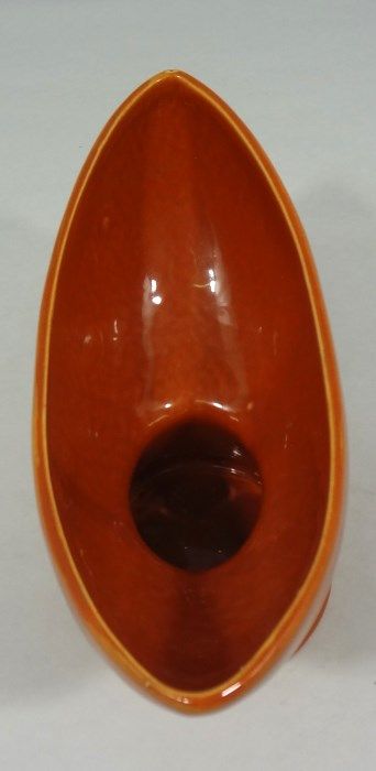 McCoy Harmony Boat Planter from the early 1960's. This piece is found in Warman's "McCoy Pottery" book on page 175. This piece is in great condition, except for a very small chip on the point of the planter. Est Value $10.00-30.00