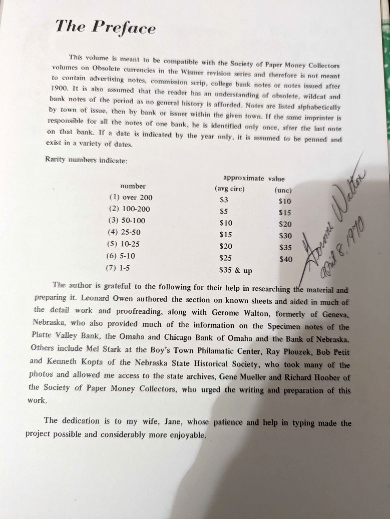 McKee, James L. THE WILCAT BANK NOTES, SCRIP AND CURRENCIES OF NEBRASKA PRIOR TO 1900. James L. McKee. 1970. 4to. 60 pages. Signed by contributor Gerome Walton on Preface page. Original green cloth, gilt. Dust jacket. Fine. b&w illustrated throughout. This book is a guide to the bank notes, currencies, and scrip used in the state of Nebraska prior to 1900. It covers the different issuing banks, cities, and companies that issued the notes with historical and physical information of each note. Lot weight: 1 lbs 4oz. Subject(s): United States Paper Money - Nebraska.