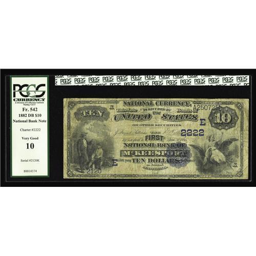<B>McKeesport, PA</B></I> - $10 1882 Date Back Fr. 542 <B>The First NB</B></I> Ch. # (E)2222<BR>This note is the only $10 1882 Date Back in the census for this bank. <B>PCGS Very Good 10.</B></I>