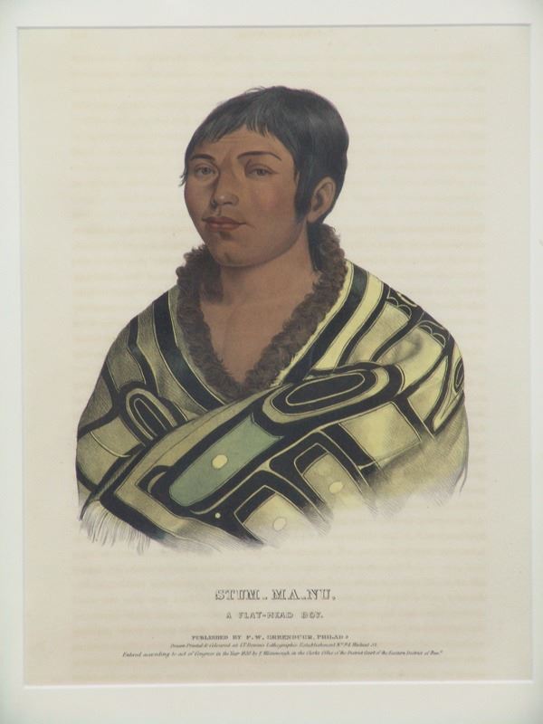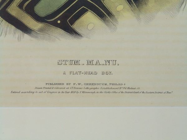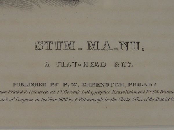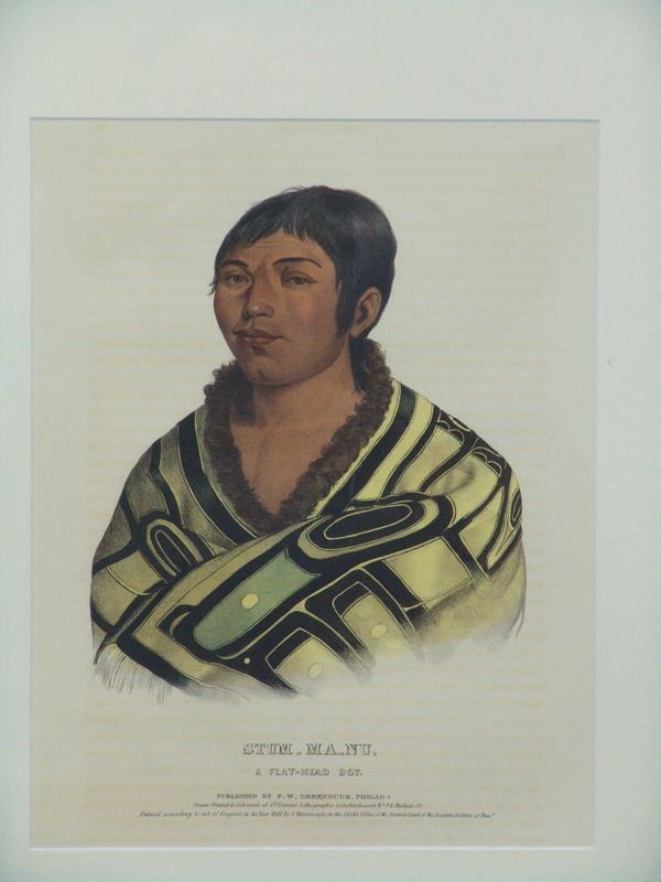 Stum-Ma-Nu, a Flathead Boy" from their History of the Indian Tribes of North America" by F.W Greenough, 1838. Original, hand-color lithograph. Very good condition, matted and framed.Mid 1800s13" x 10" (23" x 19")