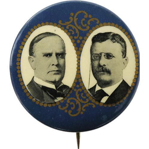 <B>Scarce McKinley & Roosevelt Jugate Button in Impressive 1 3/4" Size.</B></I> Common in 7/8" size, but this large version is a different story all together, especially in this choice condition. <I>From the Norman Loewenstern Collection.</B></I>