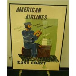 Poster. American Airlines. McKnight - 1948. Edward McKnight - Kauffer - British-American poster artist. 40" x 30" in acrylic frame. Signed and dated with American Airlines logo. Condition: Thumbtack holes at corners from original owner.