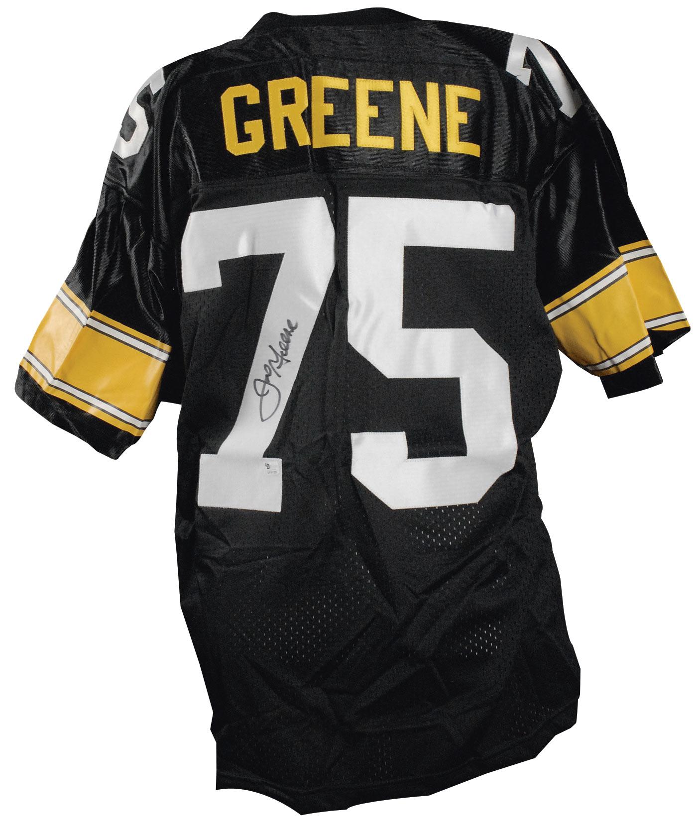 Replica Pittsburgh Steelers football jersey, with sewn on letters and numbers, signed in felt tip on the number on the back. In very fine condition.