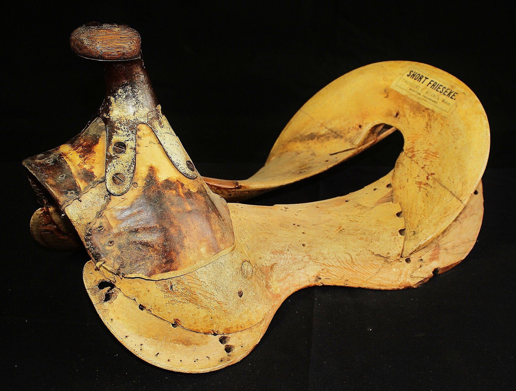 Great early slick fork saddle tree with tall cantle and great look. Well marked with a label on the face of the cantle stating "Theodore Meanea Denver Colorado".