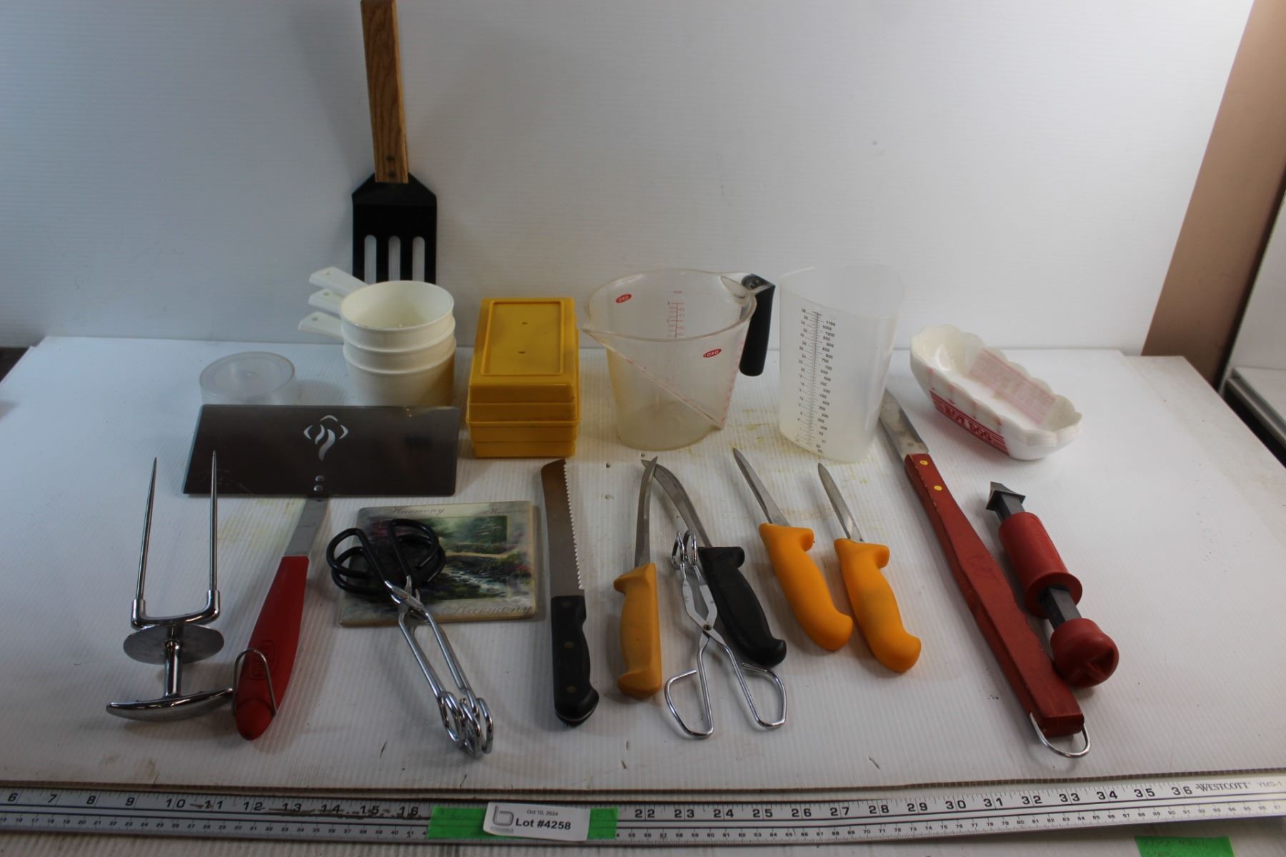 Measuring Cups, Spatulas, Butcher Knives and Assorted BBQ Tools