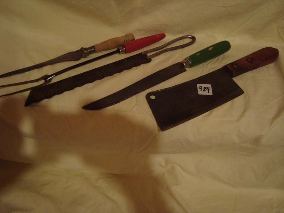 Meat Cleaver, Old Kinves (3), and Carving Fork