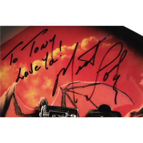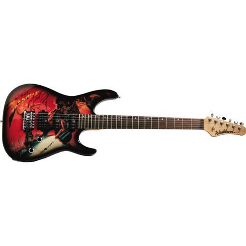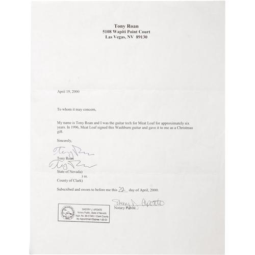 <B>Meat Loaf Bat Out of Hell Custom Guitar.</B></I> A Washburn Mercury model six-string guitar with custom airbrushed "Bat Out of Hell" design, inscribed and signed by Meat Loaf in black marker. Released in 1977, <I>Bat Out of Hell</B></I> was Meat Loaf's second album, and although not an instant hit, it gradually propelled him to stardom and continues to sell about 200,000 copies a year. Also included is an unused Meat Loaf guitar pick and autographed b&w 8" x 10". <I>Accompanied by a letter of authenticity.</B></I><I>From the Robert Johnson Memorabilia Collection.</B></I><BR><BR><b>Shipping:</b> Musical Instruments, Large (<a target="_blank" href="http://www.heritageauctions.com/common/shipping.php">view shipping information</a>)