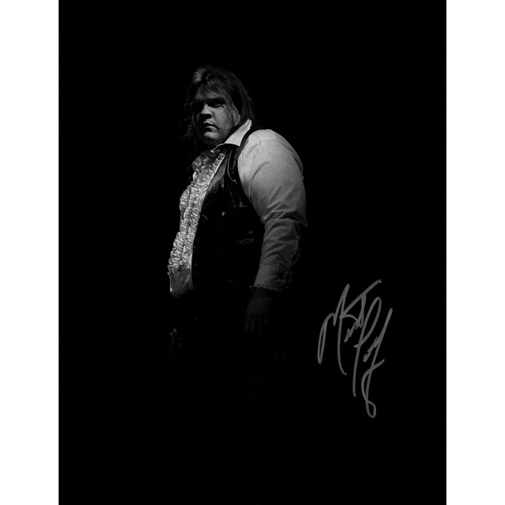 Dramatic satin-finish 11 x 14 portrait of Meat Loaf in the shadows, signed in silver ink. In fine condition, with a JSA label affixed to the reverse. Accompanied by a certificate of authenticity from JSA.
