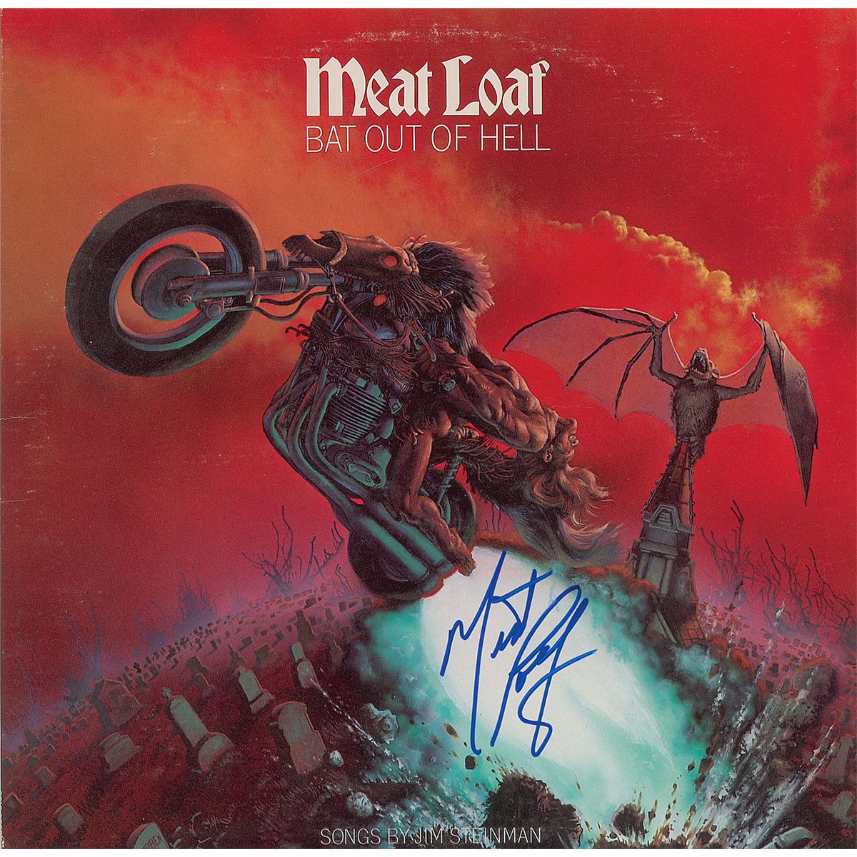 Bat Out of Hell album signed on the front cover in blue felt tip by Meat Loaf. In fine condition. The record is included.