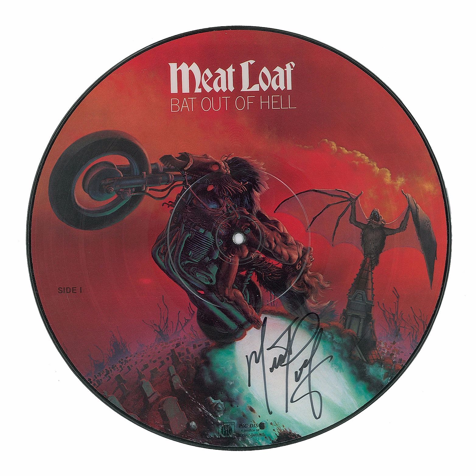 Bat Out of Hell picture disc album signed on the disc in black felt tip. In fine condition, with standard wear to the sleeve. The original record sleeve is included. Consignor notes that the signature was obtained in person after a show at Cleveland's Palace Theater.