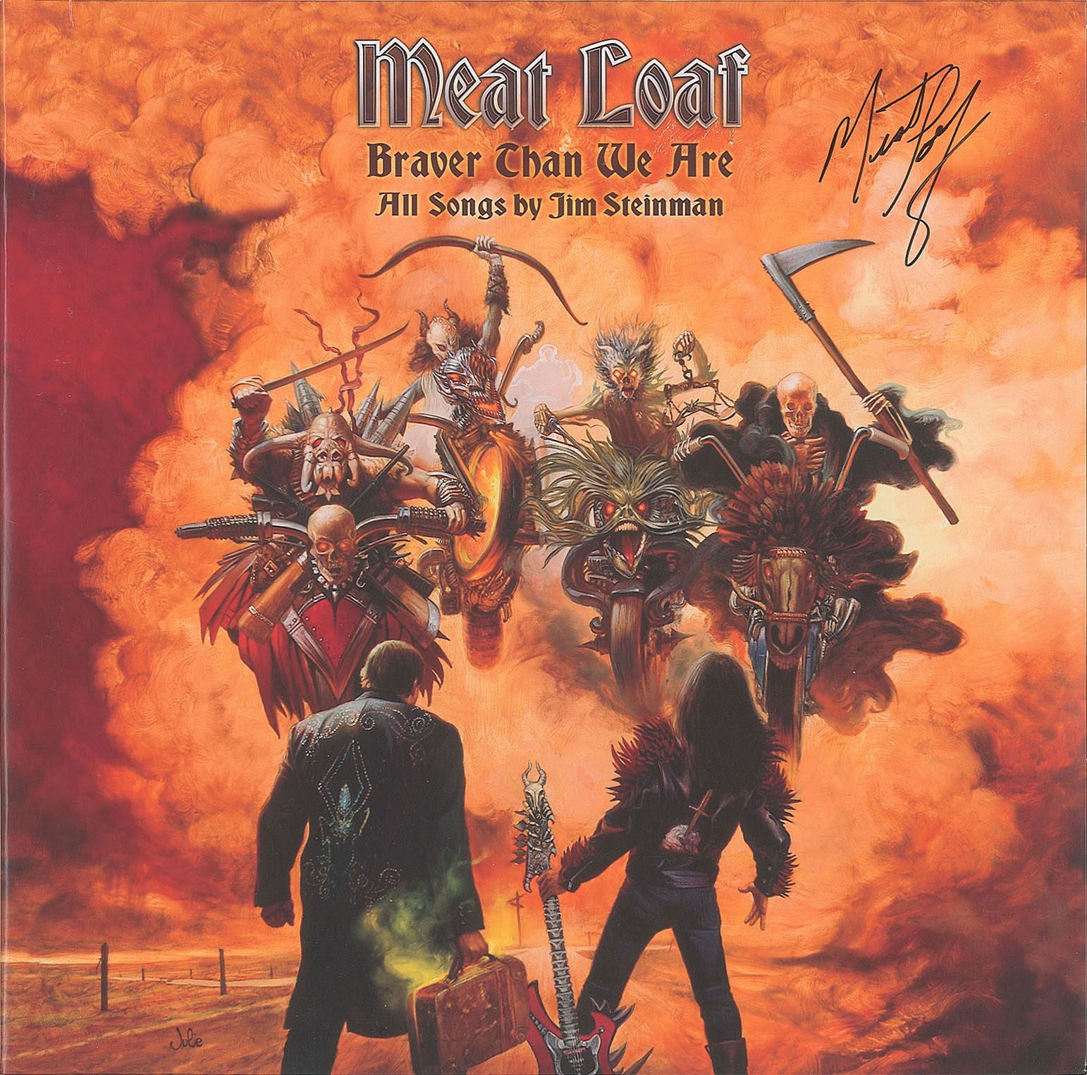 Braver Than We Are album signed on the front cover in black felt tip by Meat Loaf. In fine condition, with a light surface gouge across the top. The record is included.
