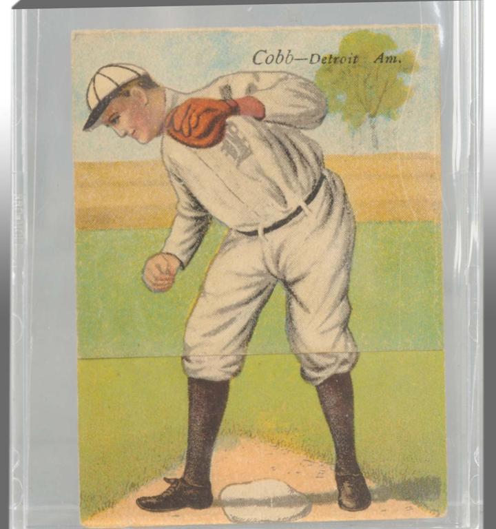 From the early Double Folds series. Ty Cobb and Sam Crawford are on the same card, by lifting up half the card Cobb becomes Crawford. Card is ungraded with slight creasing to left corner and moderate edge wear. Tobacciana Condition (Very Good). Size 2" x 3".