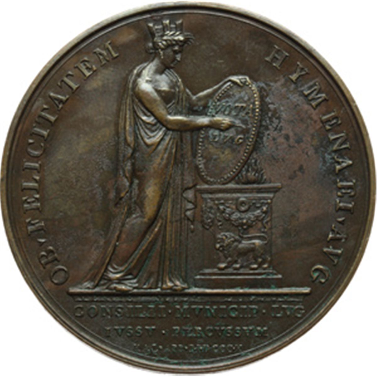 Medaglie Napoleoniche. Napoleone I (1804-1814). Medaglia 1810 per le nozze con Maria Luisa d'Austria, dono della cittv† di Lione. Bramsen 960.Julius 2271. AE. mm. 49.00 SPL+.