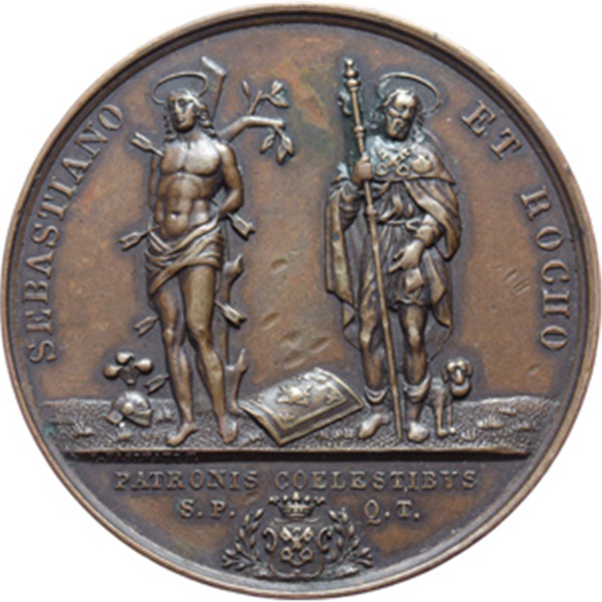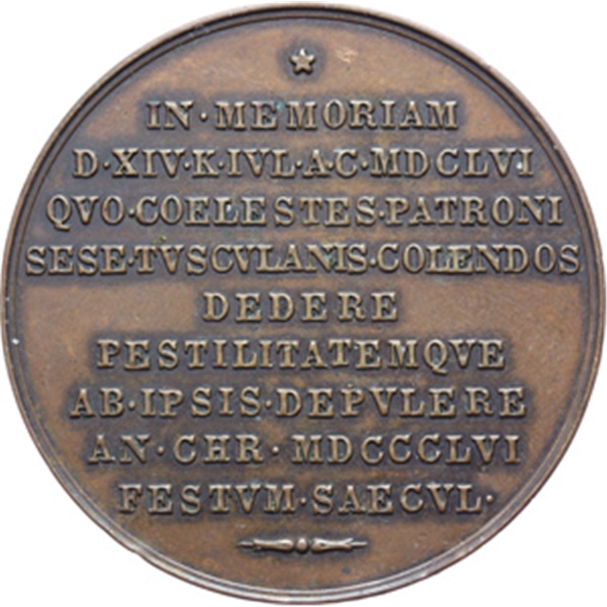 Medaglie devozionali. Medaglia 1856 commemorativa II centenario della peste in Toscana. AE. mm. 44.00 Segnetti nel campo al D/. qSPL/SPL.