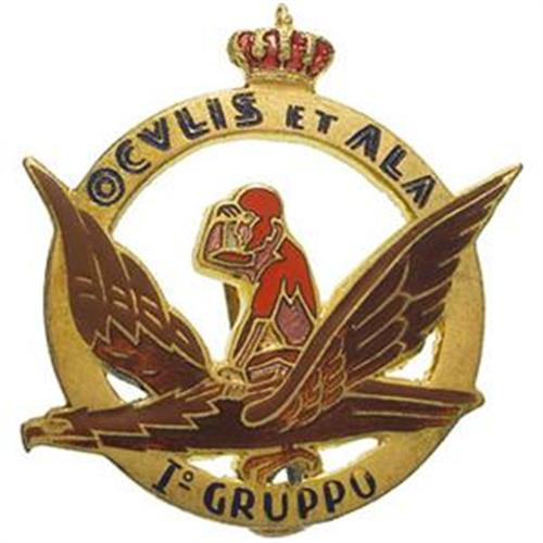 Medaglie e Placchette. Distintivo R.A. 1 Gruppo Osservatori. RRR. Metallo dorato e smalti. SPL+.