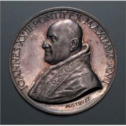 Medaglie pontificie annuali - Giovanni XXIII (1958 - 1953) - Anno I - Insieme di n.2 medaglie di cui una in argento (non comune) e una in rame - Astuccio originale per l'esemplare in argento - diametro mm. 44