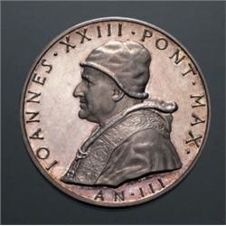 Medaglie pontificie annuali - Giovanni XXIII (1958 - 1953) - Anno III - Insieme di n. 2 esemplari di cui una in argento e una in rame - Astuccio originale per l'esemplare in argento - diametro mm. 44