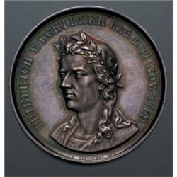 Medaglie Varie - Federico Schiller - Medaglia 1859 commemorativa del centenario della nascita - Qualche minimo colpo sui bordi, peril resto perfetta con splendida patina e fondi a specchio - gr. 39,6 - diametro mm 41,5