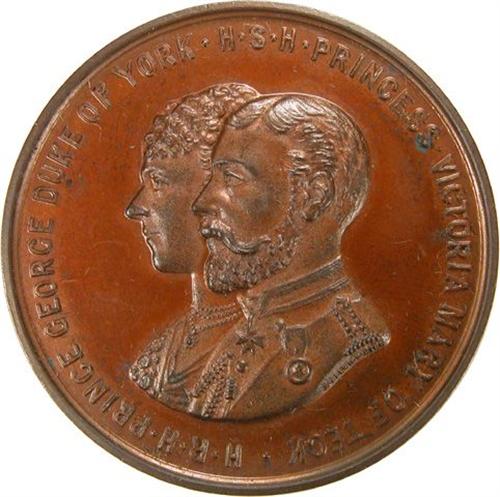 1893 Marriage of HRH Prince George, Duke of York. Bronze 39mm and May 6th 1935 to Commemorate 25th Year of their Reign, Bronze 40mm.
