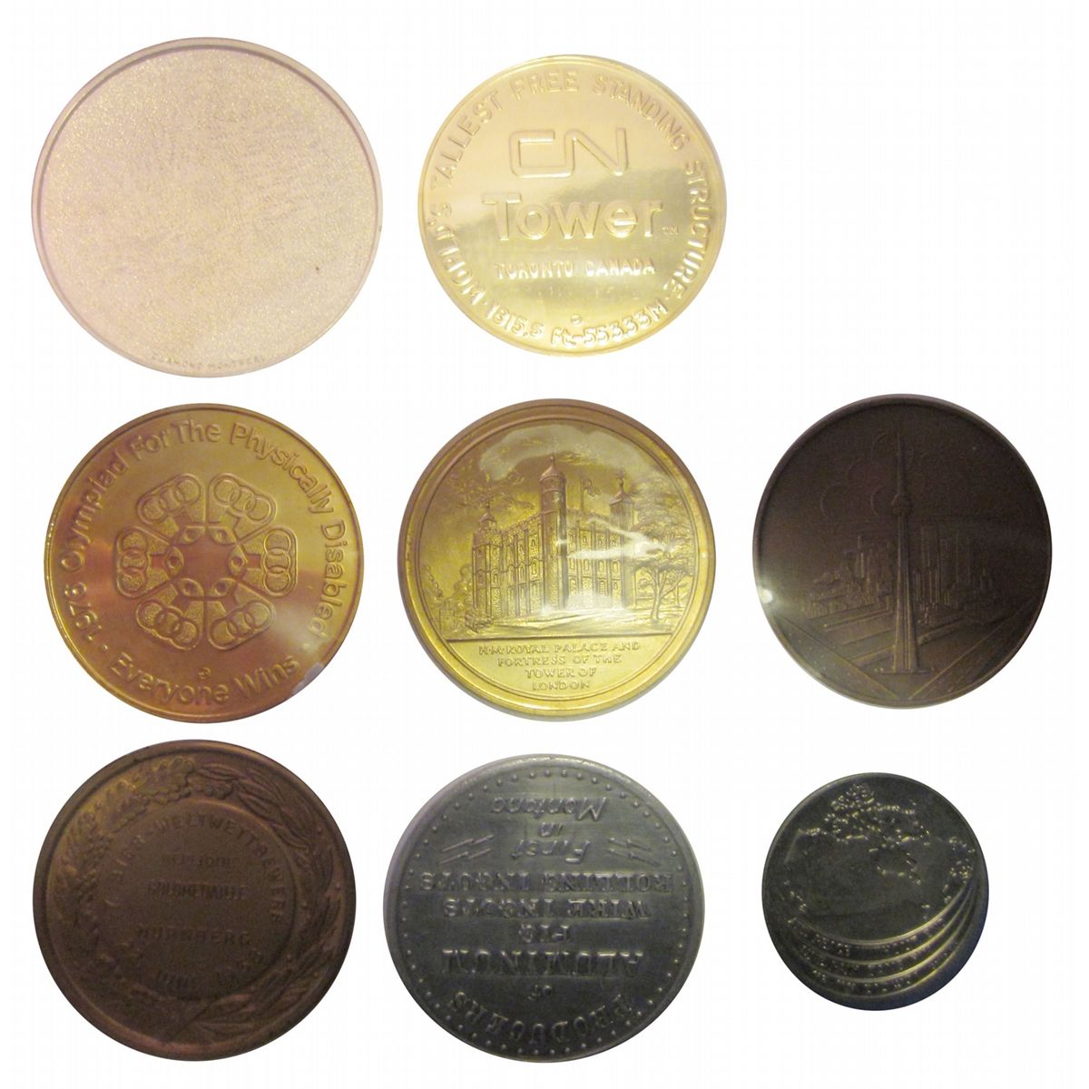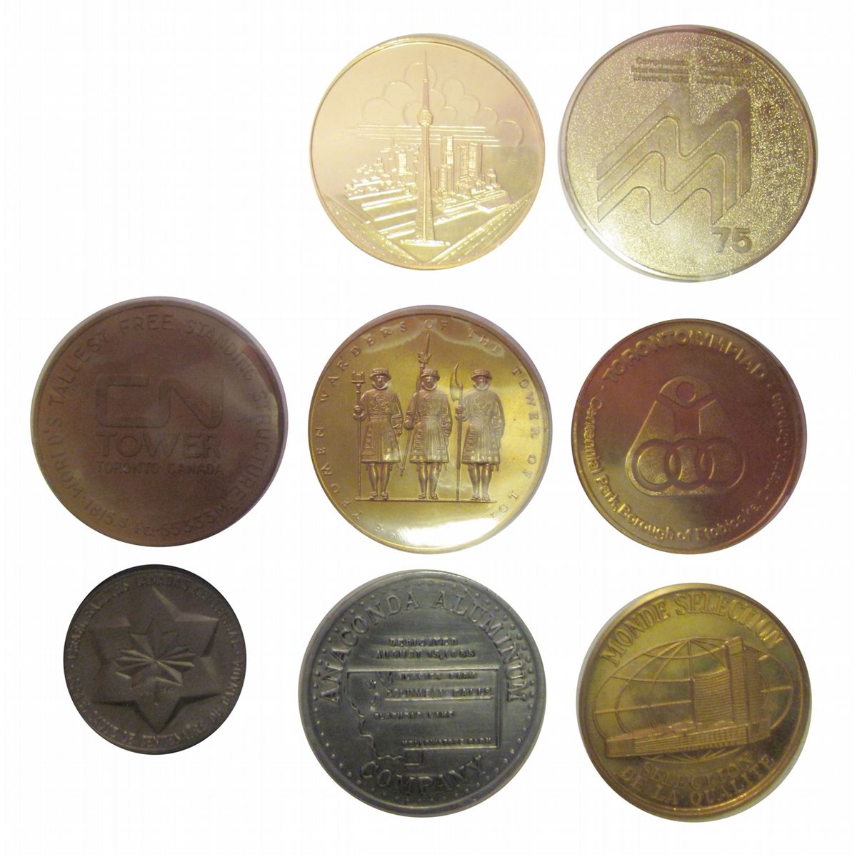 Medal; 2 x CN Tower, Compétition International Montreal 1975, The Yeoman Warders of the Tower of London, Toronto olympiad, 1967 Canada-Israel Friendship, Anaconda Aluminum, Monde Selection 1968, Lot of 8 various medals.