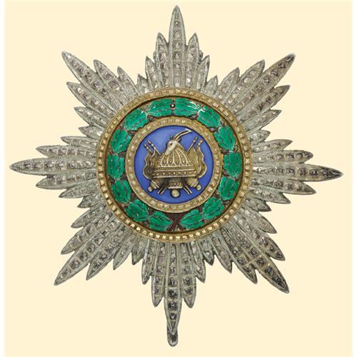 Grand Cross Breast Star - 1st type; breast star, silver brilliant cut (Italian style), medallion gilt and enamelled (goat's head left); thin pin on reverse and maker's mark "Cravanzola". Very fine quality.