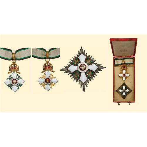 Grand-Officer set (2nd class) of first type with case by Schwerdtner of Wien. Bronze-gilt. Extremely