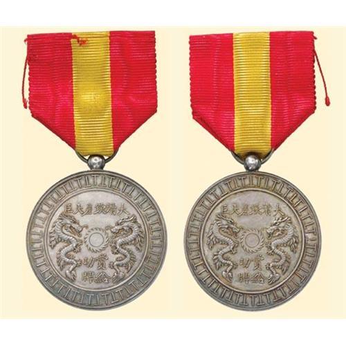 Medal with two dragons in silver. Extremely fine.