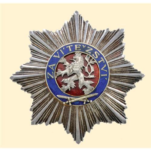2nd Class Star of the order by Karneta Kysely, Praha. Breast star in silver, with enamelled centre, strong pin, hallmarked (900), maker`s mark "KK" (KARNET&KYSELY, Praha). Perfect condition. A very rare order.