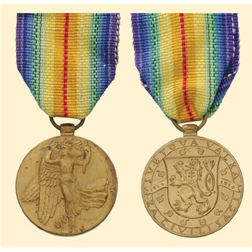 Interallied Victory Medal; breast badge in bronze, with original suspension ring and ribbon. Mint state.