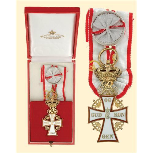 Officer`s Cross - type "CR IX" (1863 - 1906); breast badge, silver gilt, enamelled, with original ribbon with rosette in box of issue by A.Michelsen - Kopenhagen. Insignificant enamel chip.