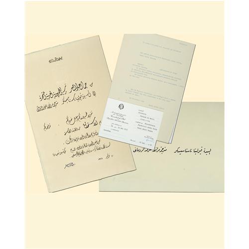of president Gamal Abdel Nasser, dated 1966 (in Islamic dating); with original envelope and enclosed