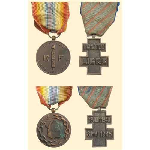 Two Free French Medals: Free French Volunteer Services Cross (1945); Liberated France Medal, 2nd model, traces of corrosion.