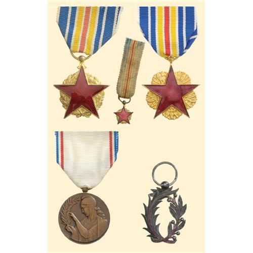 Reconnaissance Française Medal, 2nd model in bronze; two different Wound Medals; a miniature; Academic Palms, silver (5 pieces in all).