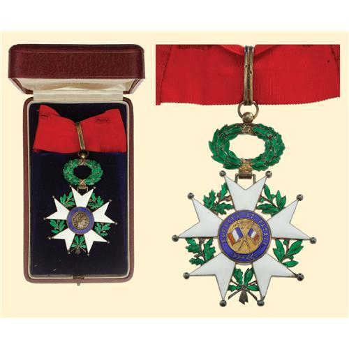 Commander`s Cross of the Third Republic (1870 - 1947); silver, solid model in its original box (LH Commandeur), with original suspension loop and a piece of ribbon. Some enamel damages on one arm.