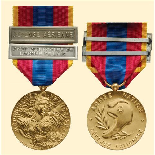 National Defense Medal, 2nd model with "Défense Aérienne" and "CMDT des écoles de l`Armée de l`air" bars.