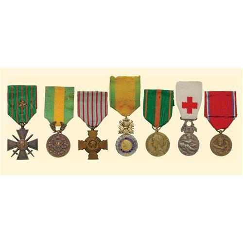 Lot of 7 medals including: Military Medal of the Third Republic, silver; War Cross of 1914 - 1918 with